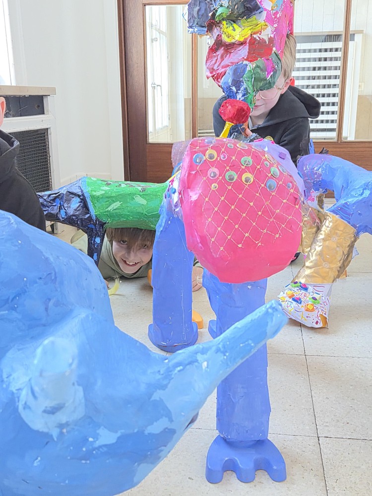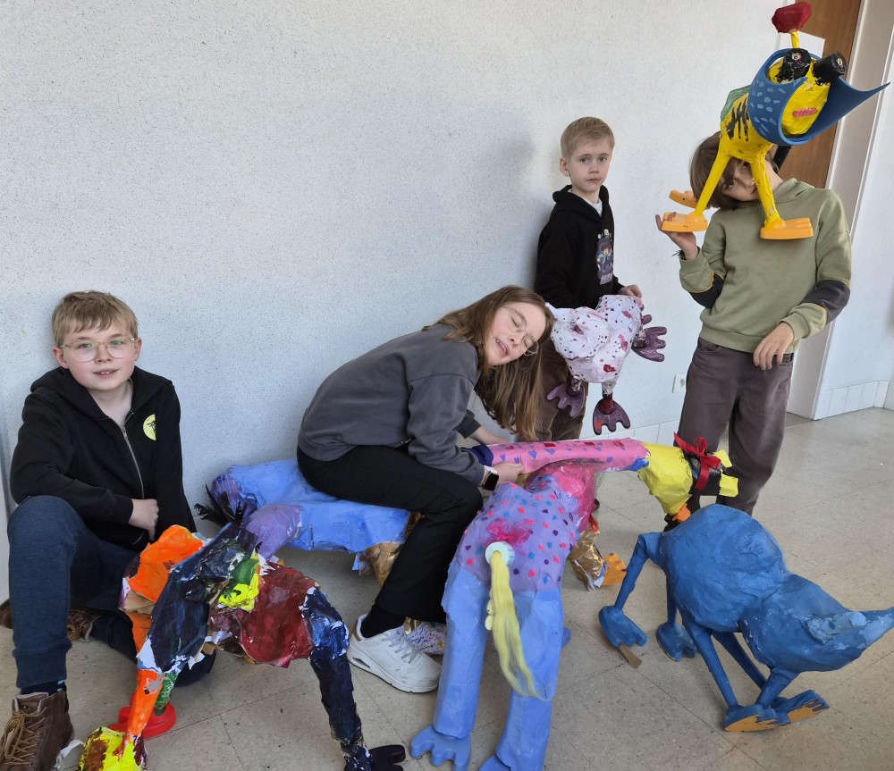 De leerlingen van het Beeldatelier Grembergen lieten hun fantasie de vrije loop en maakten een reeks kleurrijke, grappige dierencreaties. Je kunt hun werk bewonderen in de jeugdafdeling van de Bib Dendermonde.